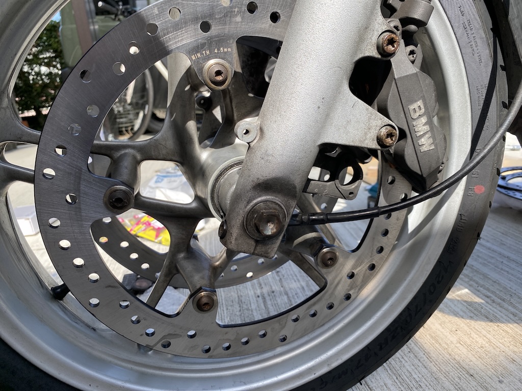 ディスクは国内のお店から無印の同等品を、パッドは以前買い込んであった、ベスラのメタルパッド シンタードパッドです。ディスク交換は、暑くなる前にさっさと、こなしました。ただし、ディスクを止めているトルクスのボルトがロックタイトを塗ってそうなので、なめたり、折れたりするのが嫌なので、アリエクスプレスで中華製のマキタバッタヒートガンを購入してしましました。タイヤを外し、角材の上に乗せ、ヒーターガンで炙って、トルクスをインパクトレンチで、ダダダダ・と一気に外しました。外れれば、あとはクリーニングをして、トルクスボルトにロックタイト243をつけて、指定トルクは、フロント24Nmリア21Nmで締めて出来上がりです。ポッドもさっさと変えて、タイヤを組んで、出来上がりです。