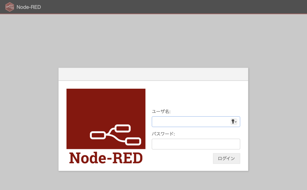 ブラウザでhttp://127.0.0.1:1880/にアクセスすると、ログイン画面が出ます。